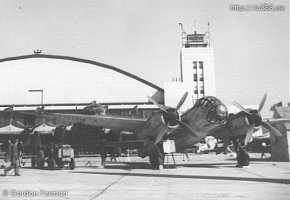 Diese Aufnahmen, die freundlicherweise von Mr. Crow zur Verfügung gestellt wurden, zeigen, daß die Maschine in der Tat mit US-Kennzeichen überführt wurde, die dann später wieder durch deutsche Kennzeichen ersetzt wurden. Der Flugplatz ist (noch) nicht bekannt. |