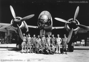 vor der erbeuteten Maschine, die noch die originale Bemalung mit deutschen