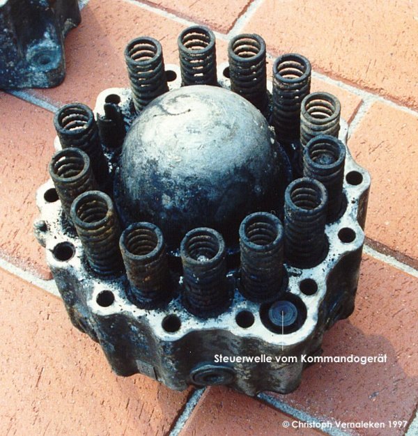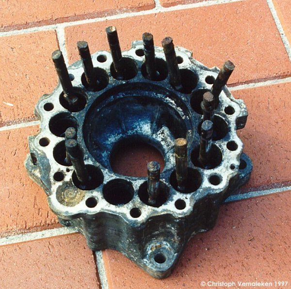 Das Foto zeigt die Vorderansicht einer originalen Einspritzpumpe (Bodenfund, aus Fw 190). Der Bosch Pendelentlüfter fehlt jedoch. Wenn man das Gehäuse öffnet, so ergibt sich folgendes Bild: